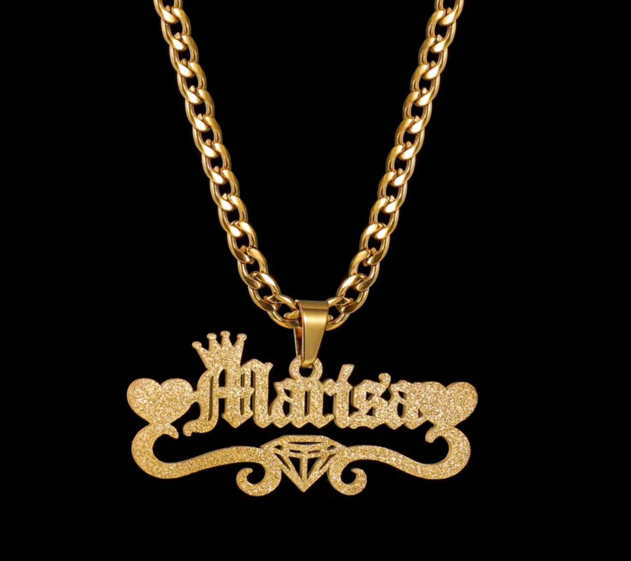 Frosted Cuban name necklace stainless steel