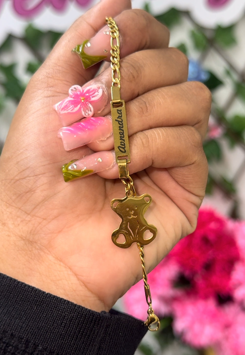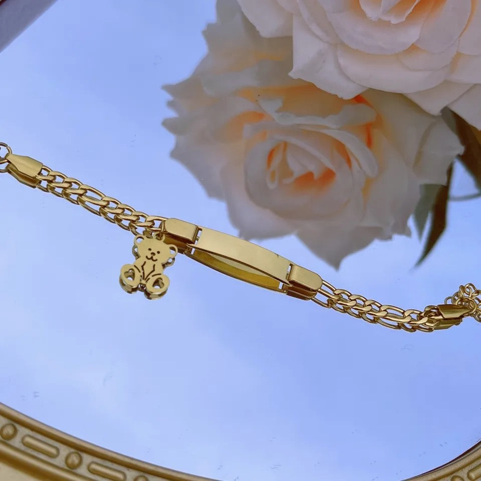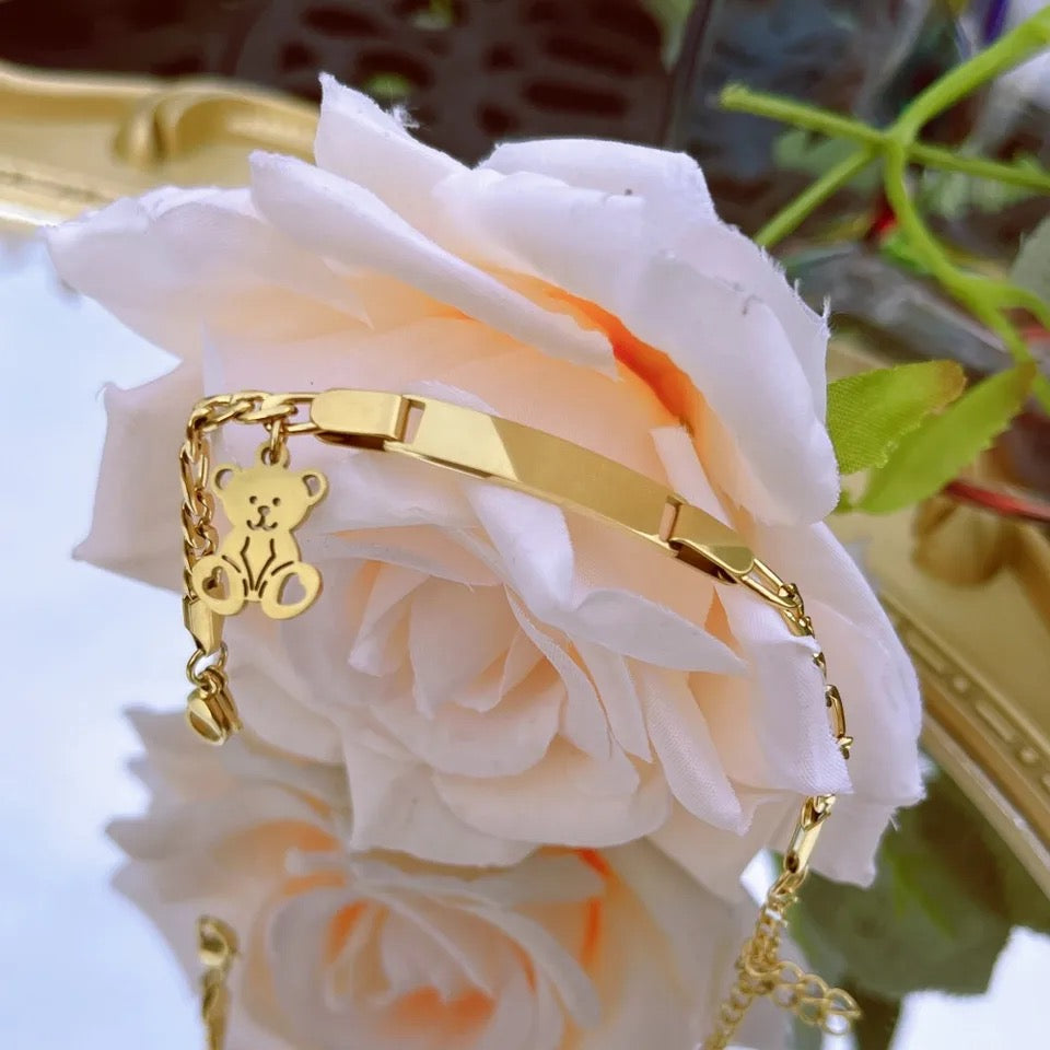 Kids teddy bear engraved name plate bracelet