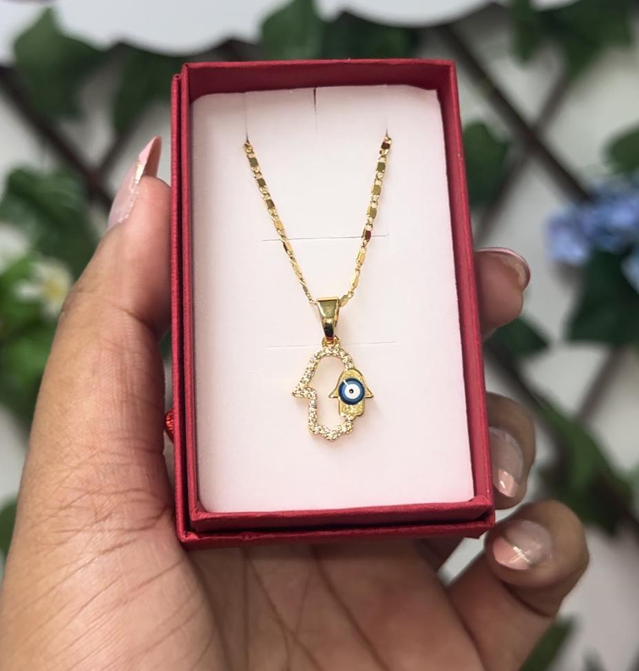 Gold cz hamsa han necklace