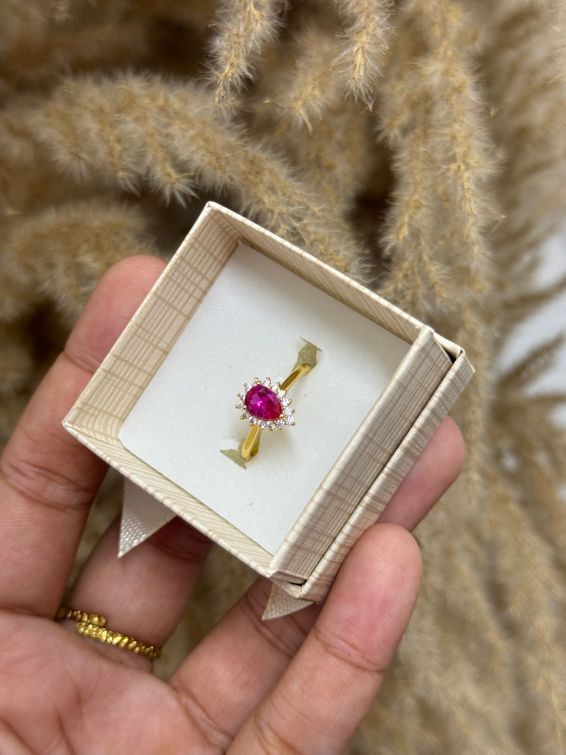 Gold plated pink tear drop ring