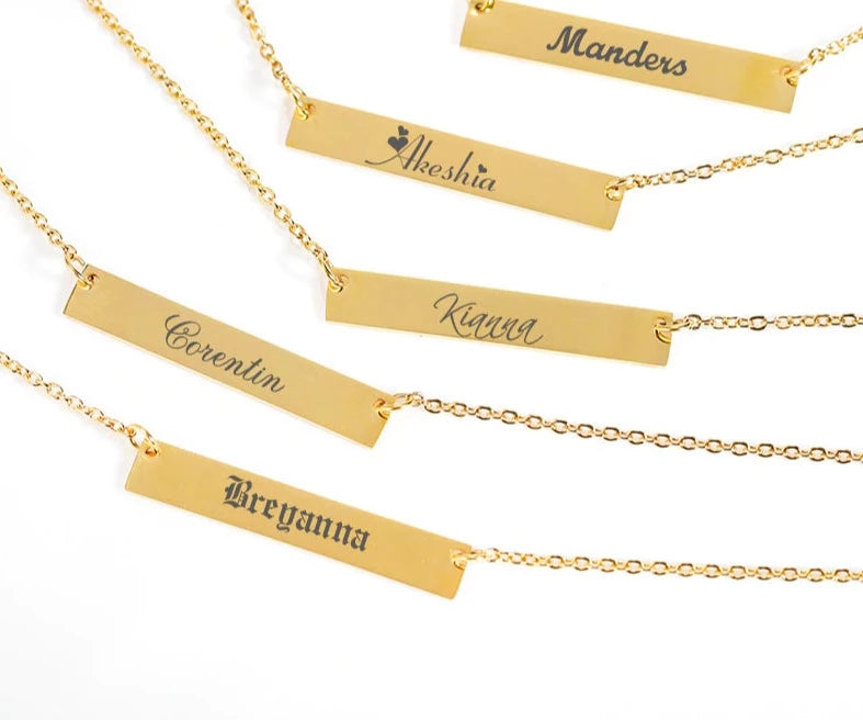 Gold plated stainless steel bar name necklace