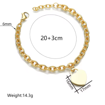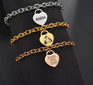 heart charm custom stainless steel bracelet