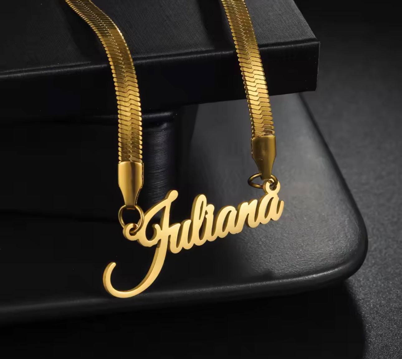 Herring bone custom name necklace