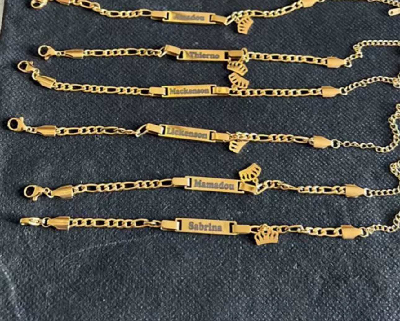 All namechains are custom-made to order and take 5-6 weeks for processing and delivery. Orders are placed every Wednesday and Saturday to ensure efficient production.